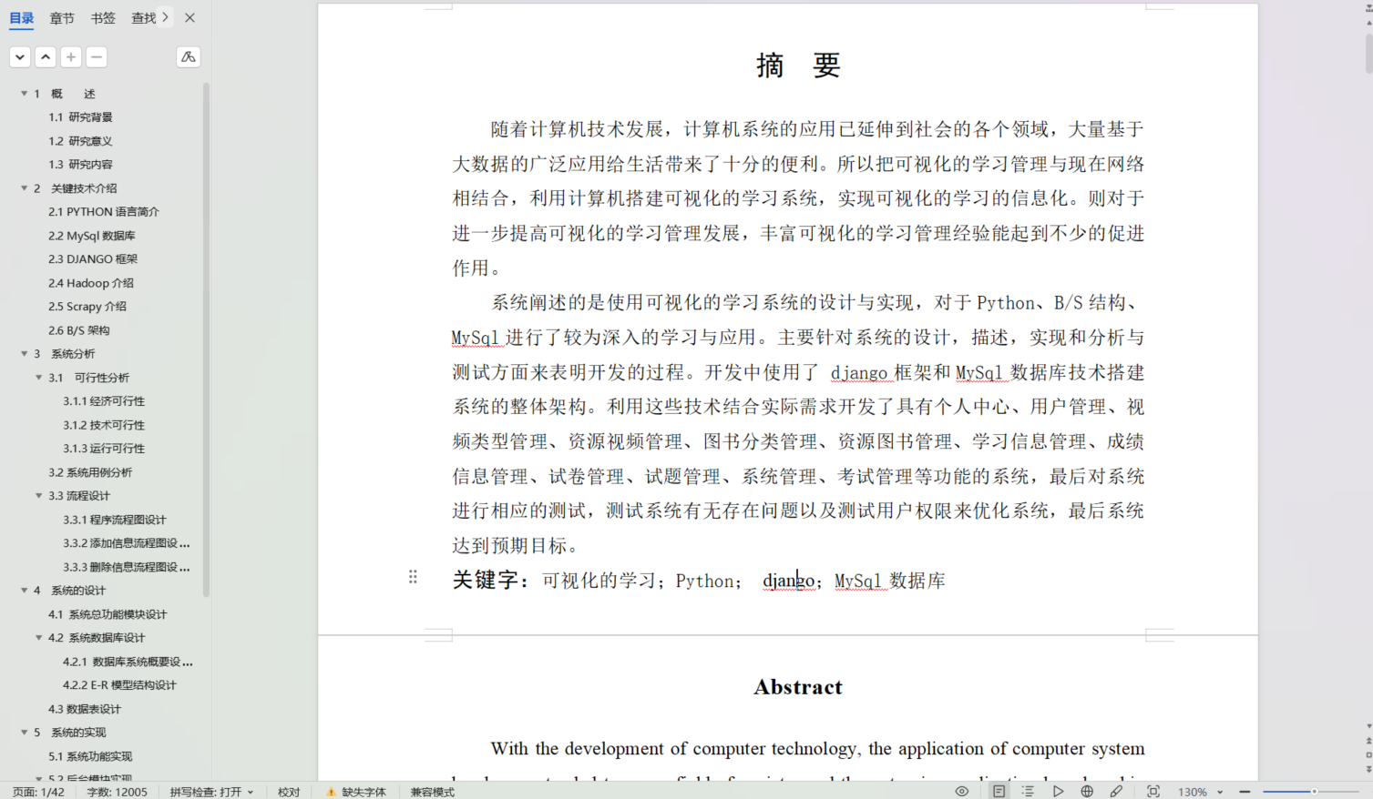 《基于Python可视化的学习系统的设计与实现》该项目采用技术Python的django框架、mysql数据库