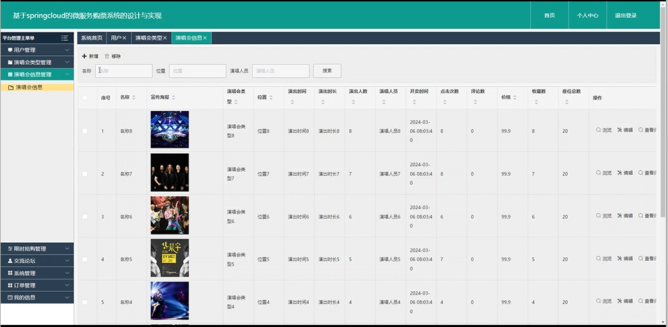 下面是系统运行起来后的一些截图: