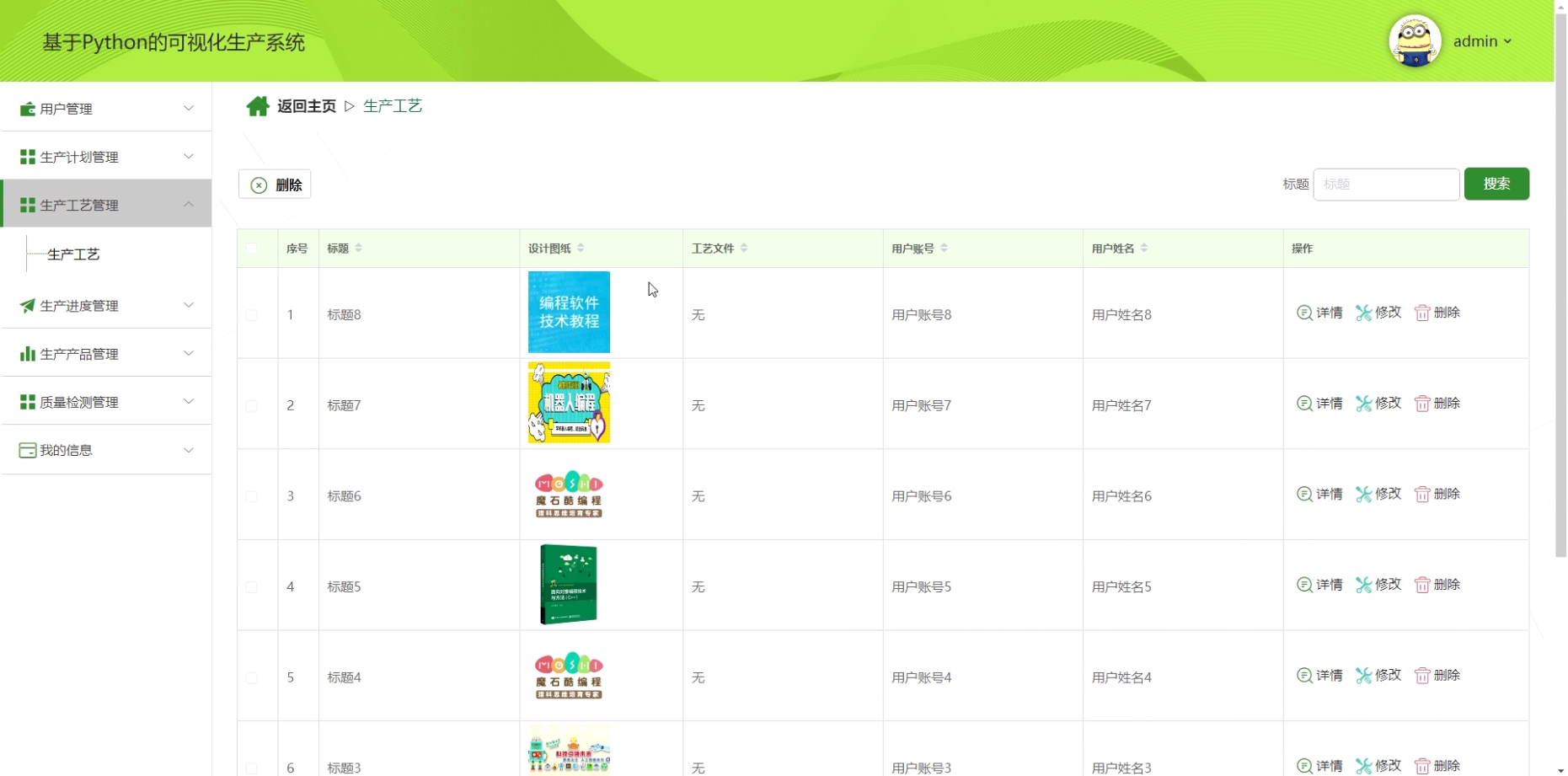 《[含文档+PPT+源码等]精品基于Python实现的django可视化生产系统》该项目含有源码、文档、PPT、配套开发软件、软件安装教程、项目发布教程、包运行成功以及课程答疑与微信售后交流群、送查重系统不限次数免费查重等福利!