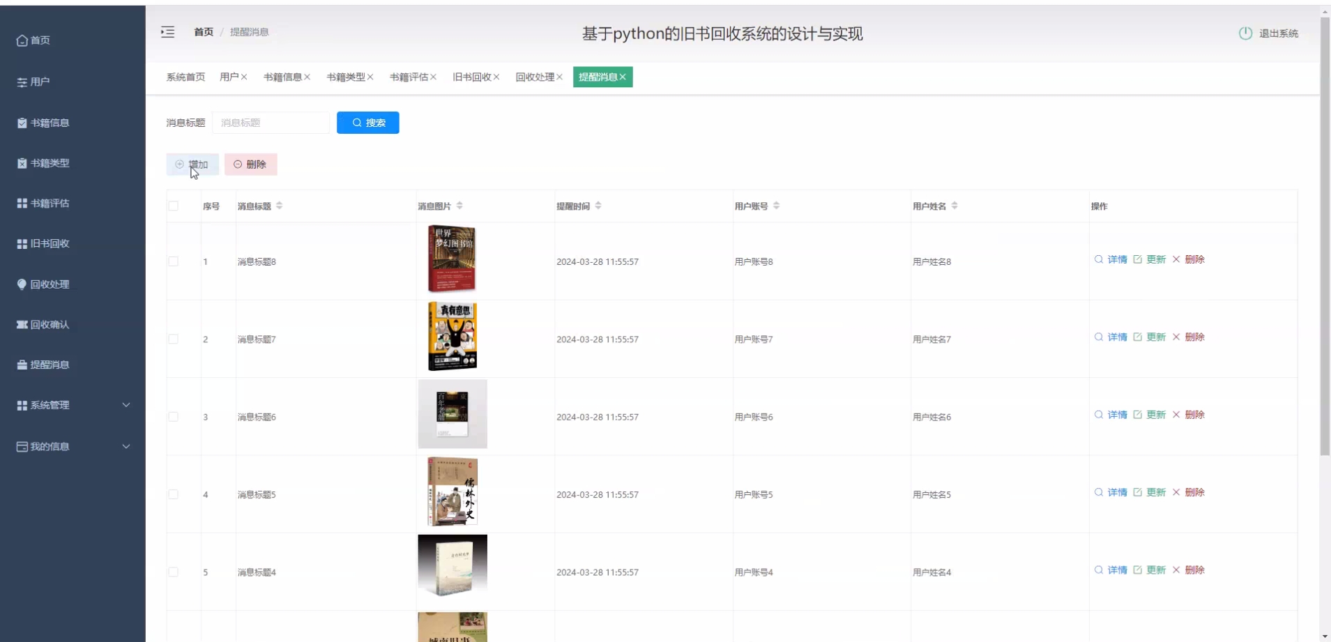 《[含文档+PPT+源码等]精品基于Python实现的django旧书回收系统的设计与实现》该项目含有源码、文档、PPT、配套开发软件、软件安装教程、项目发布教程、包运行成功以及课程答疑与微信售后交流群、送查重系统不限次数免费查重等福利!