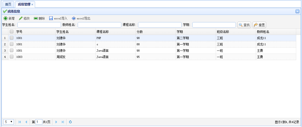 成绩管理:学生成绩的分页查询、添加、删除、更新、以及导入导出