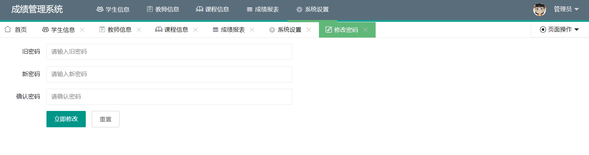 管理员角色包含以下功能:公告的增删改查,学生增删改查,教师增删改查,查看成绩并导出成绩到excel中,管理员首页,课程增删改查,批量导入学生和教师,修改密码等功能。