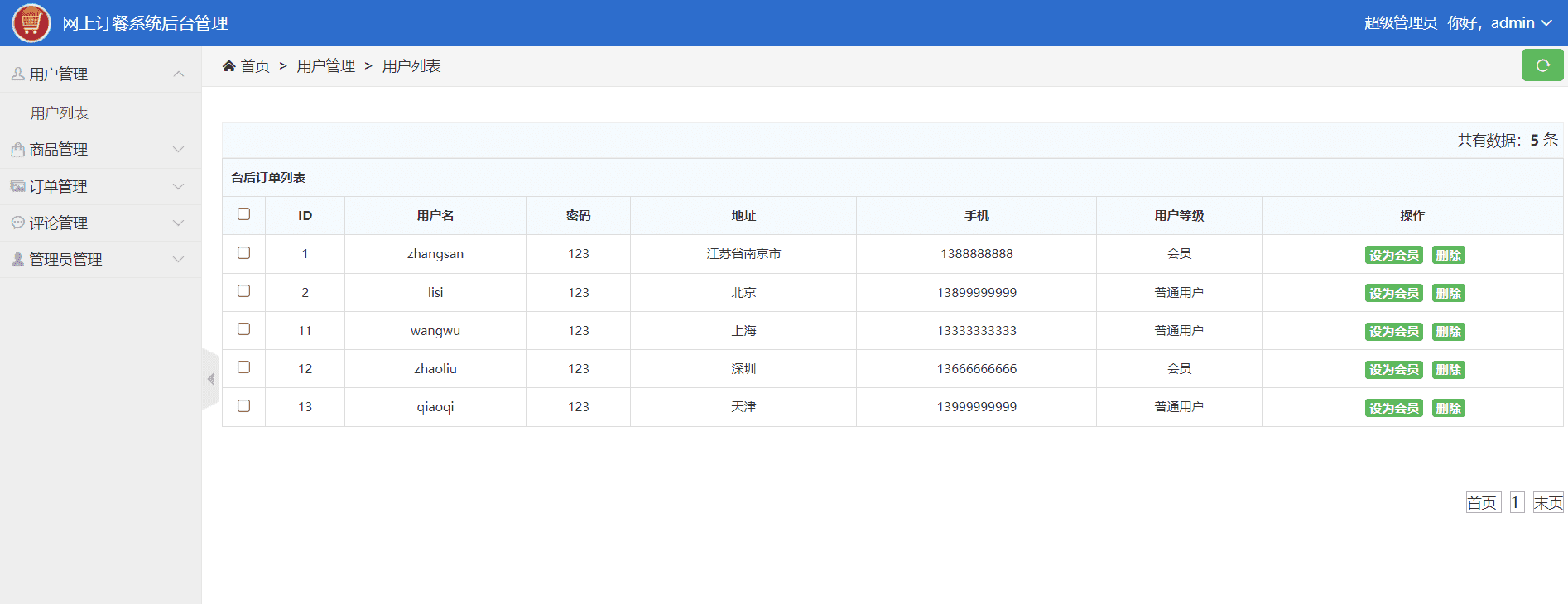 商品管理:商品列表、添加商品、修改商品、删除商品、下架商品、商品分类管理