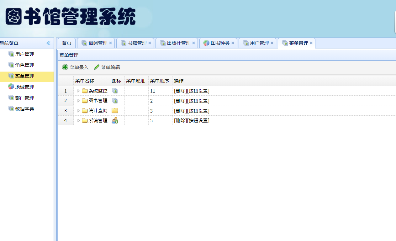 系统实现的功能主要有:图书馆里、图书分类管理、出版社管理、