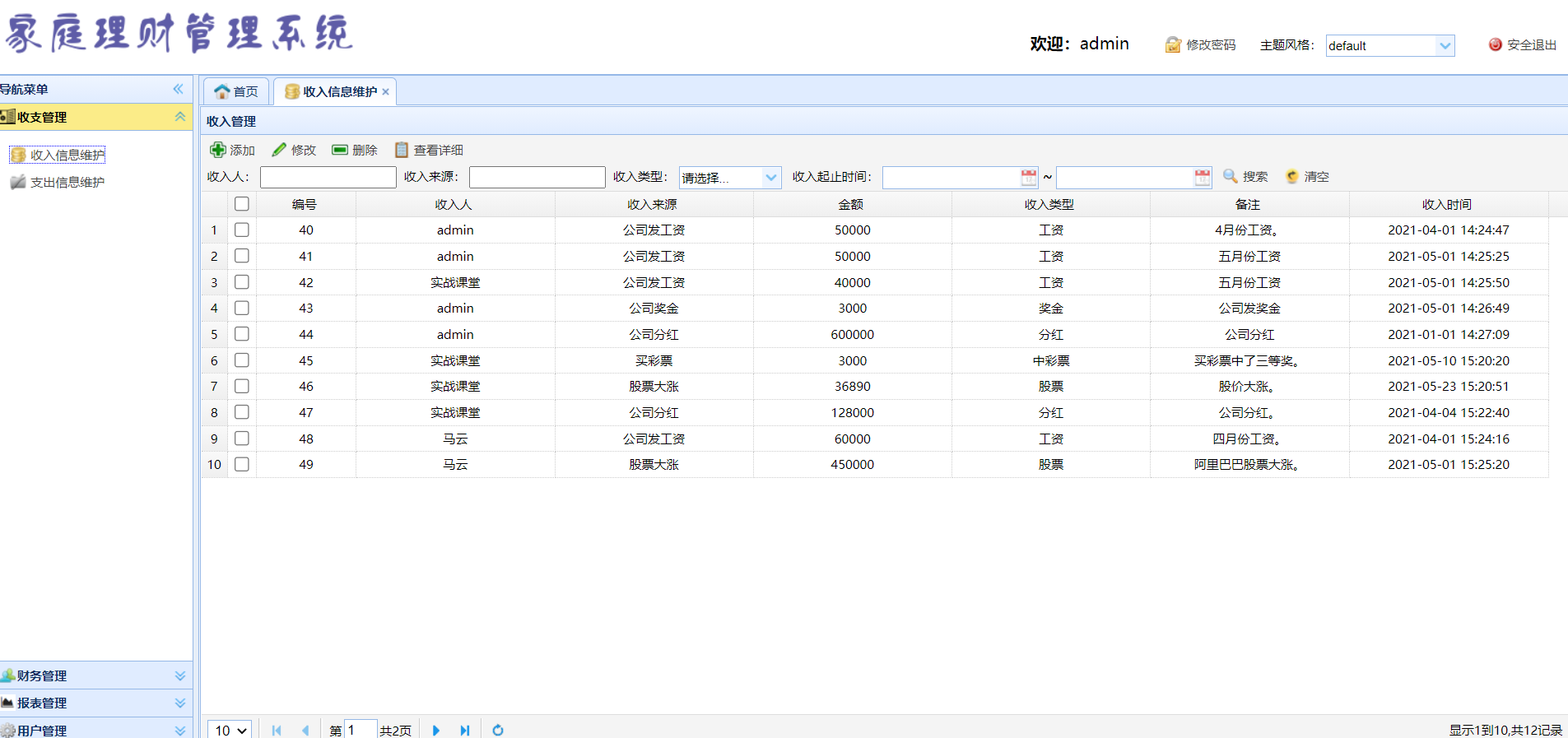 本项目基本实现了日常生活中家庭理财的所有功能,其中图表统计功能也是非常强大的