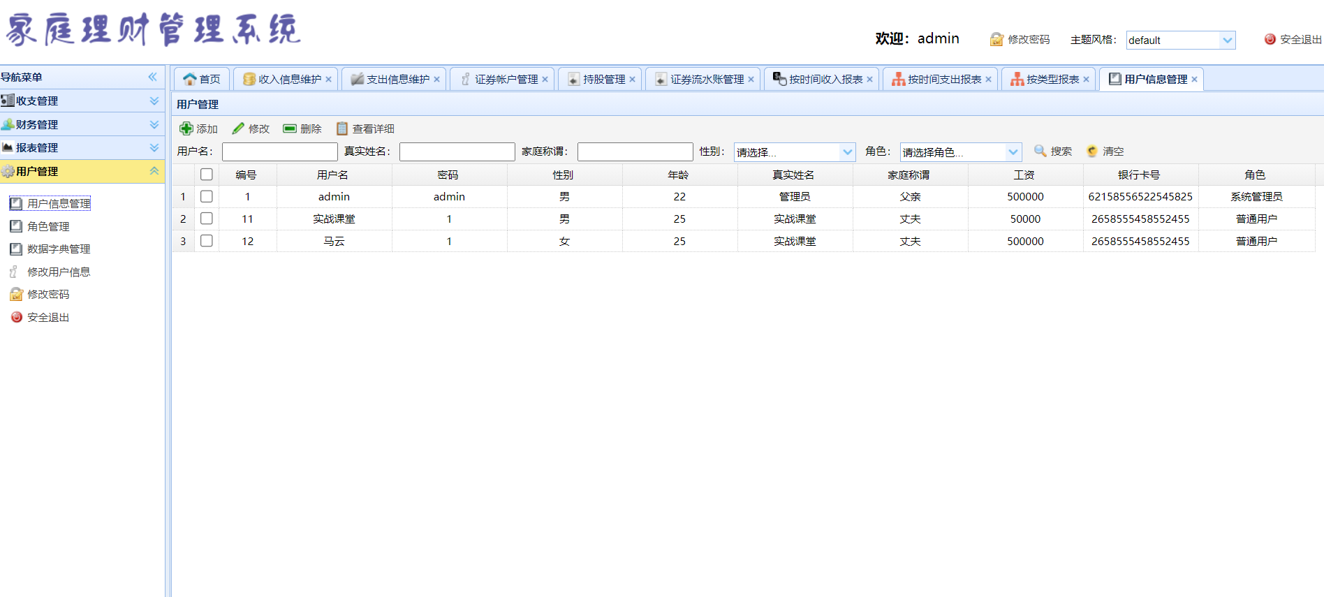 用户分为系统管理员和普通用户两个角色,普通用户可自行注册登录,系统管理员可以管理所有数据,普通用户只能管理自己的信息。