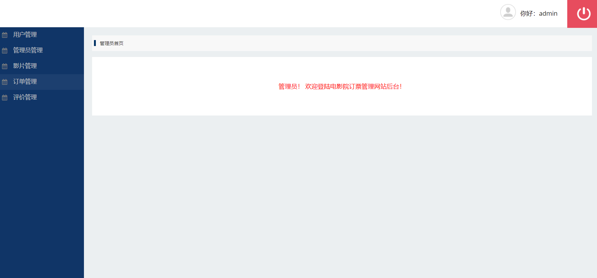 后台管理:管理员可以进行用户管理、管理员管理、影片管理、订单管理、评价管理等等。