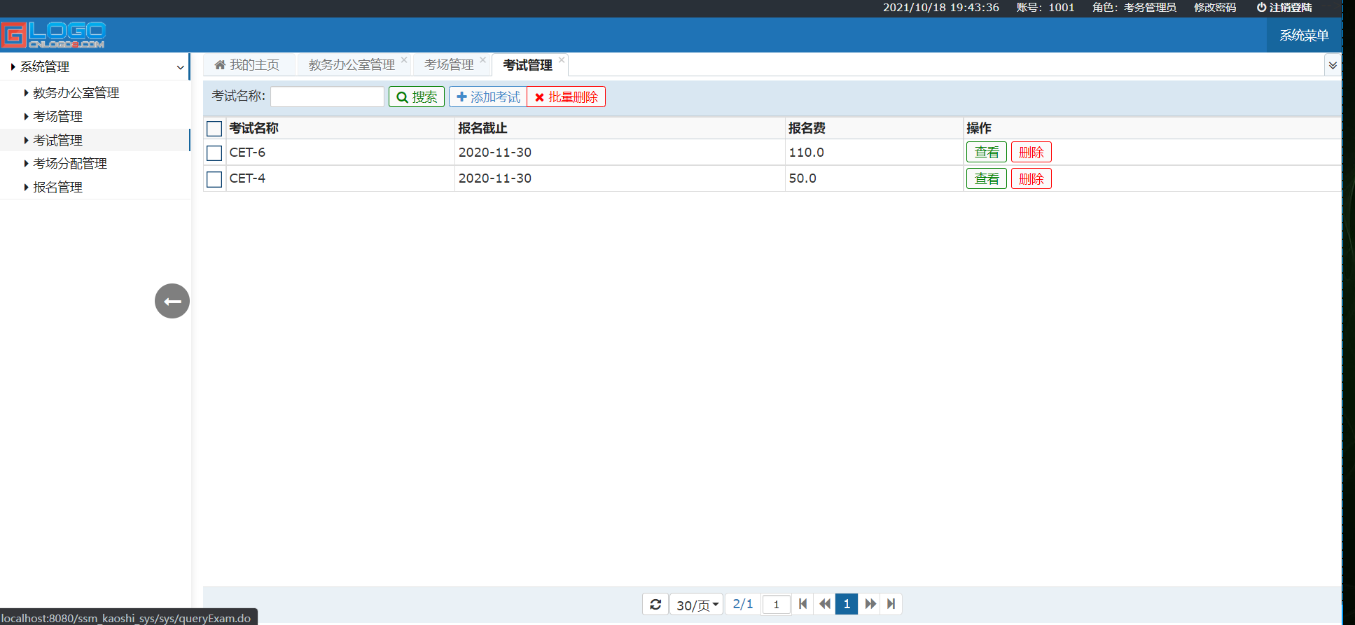 《基于SSM考试在线报名管理系统》