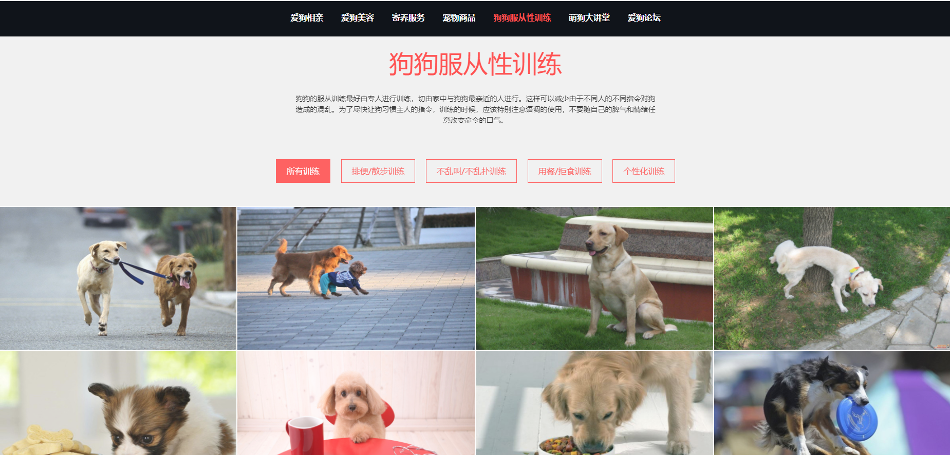 《基于HTML5,DIV CSS实现的宠物狗个性化服务网站前端》