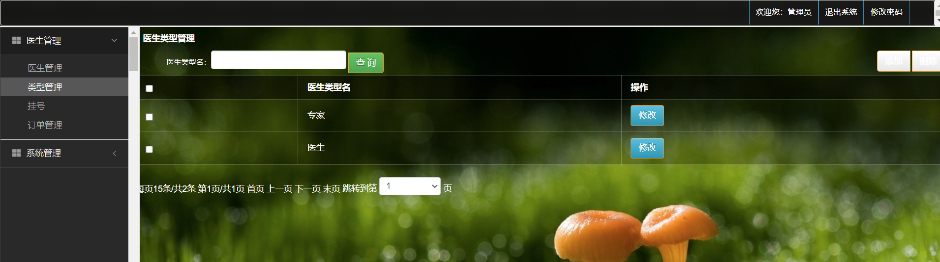 后台管理:登录、注册、医生类型的增删改查、医生的增删改查、 订单的查询和删除、后台预约医生、用户的添加删除修改、角色的添加删除修改、菜单的添加删除修改。