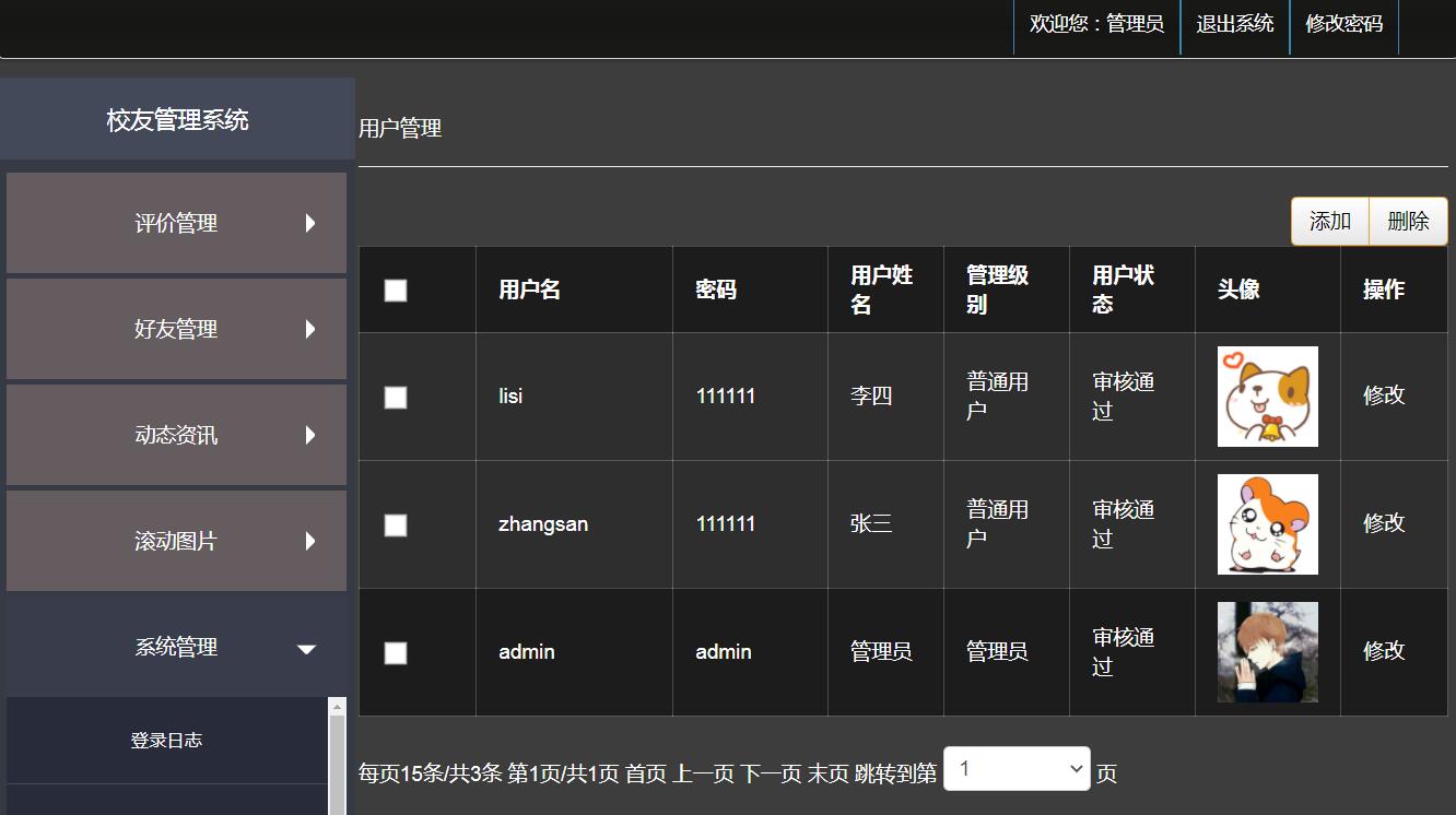 本系统包含微信小程序做的校友前台和Java做的后台管理系统:
