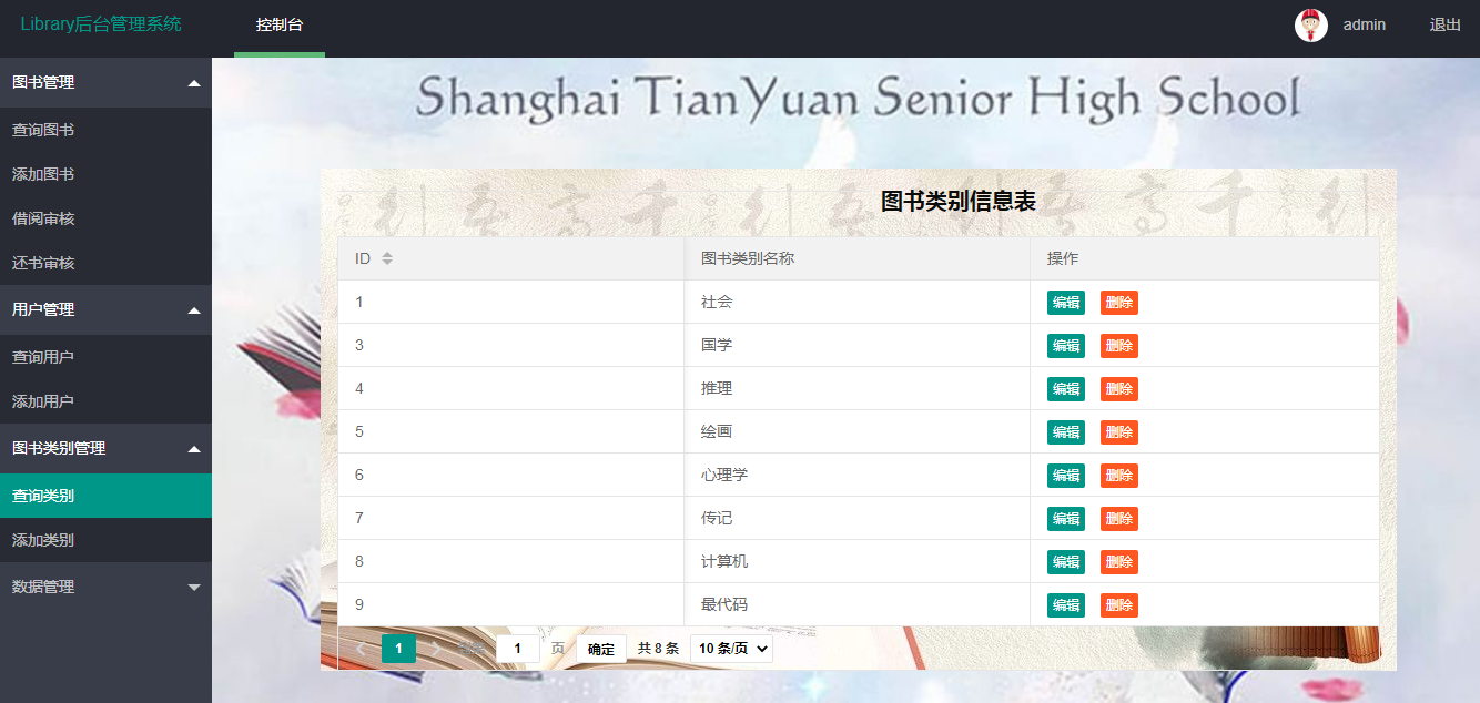 图书类别管理:主要实现对图书类别的增加、删除、查询、修改等相关操作
