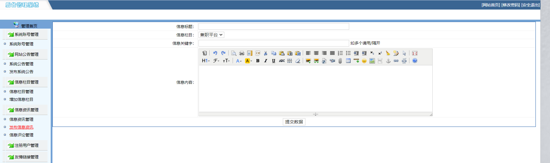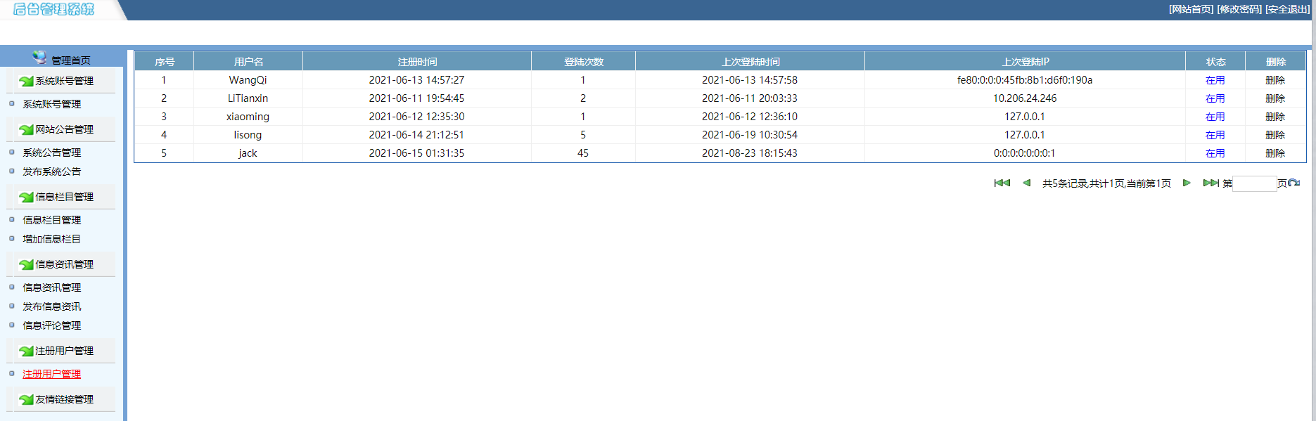 后台管理:密码管理、用户信息修改等