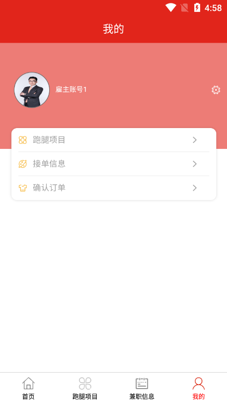 雇主前台用户:个人信息、跑腿项目、接单信息、确认订单等