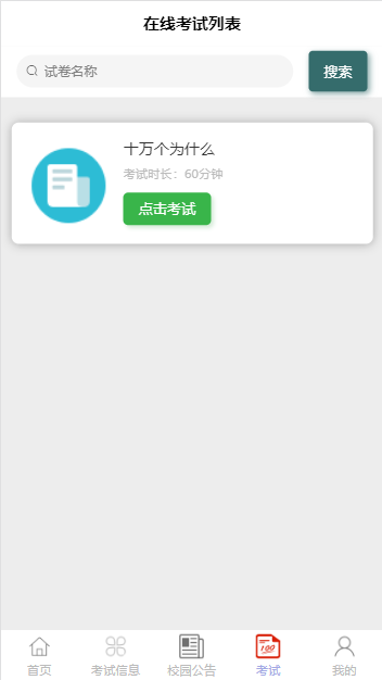 普通用户:登录注册、首页、考试信息、校园公告、考试、我的等
