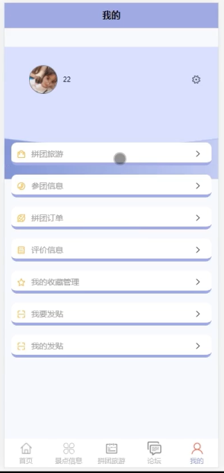 本系统的功能包括前台和后台两方面,前台的功能为旅游景点信息、拼团信息、旅游资讯信息、论坛信息等, 用户可以参与拼团,发起者可以发起拼团和管理拼团订单、参团信息。后台的功能为用户管理、评价管理、景点信息管理、拼团旅游管理等。 在前台的主要操作人员为注册用户和发起人,都可以发布帖子参与讨论,在后台的主要操作人员为管理员,负责用户信息、发起人信息和前台信息的管理。