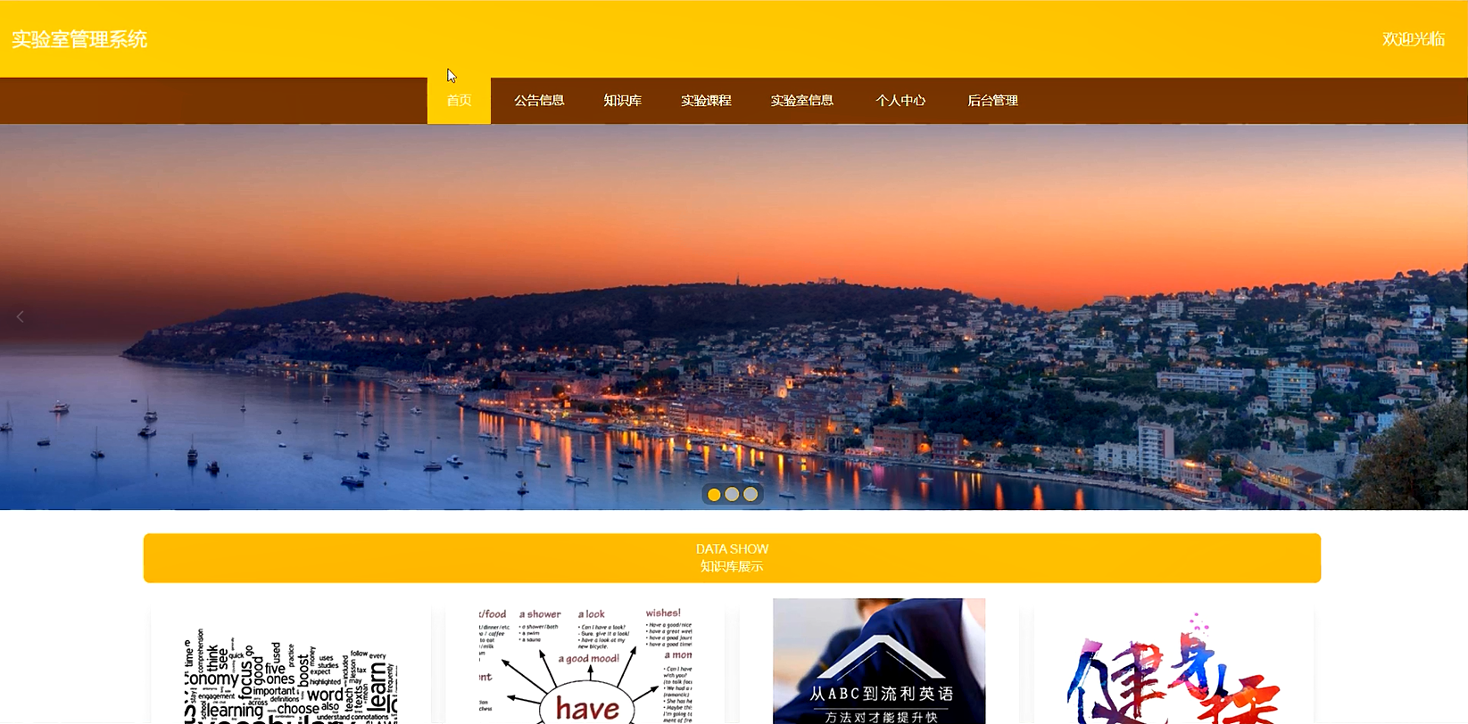 用户端功能有:前台首页、公告信息查看、知识库学习、实验课程查看、实验室信息查看及预约,登录后台查看我的预约审批、收藏管理、个人账号信息管理等