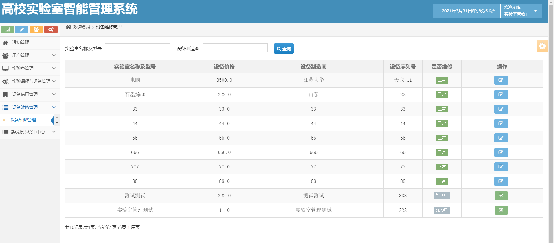 设备管理:设备的维护、借用等信息管理、以及资产管理