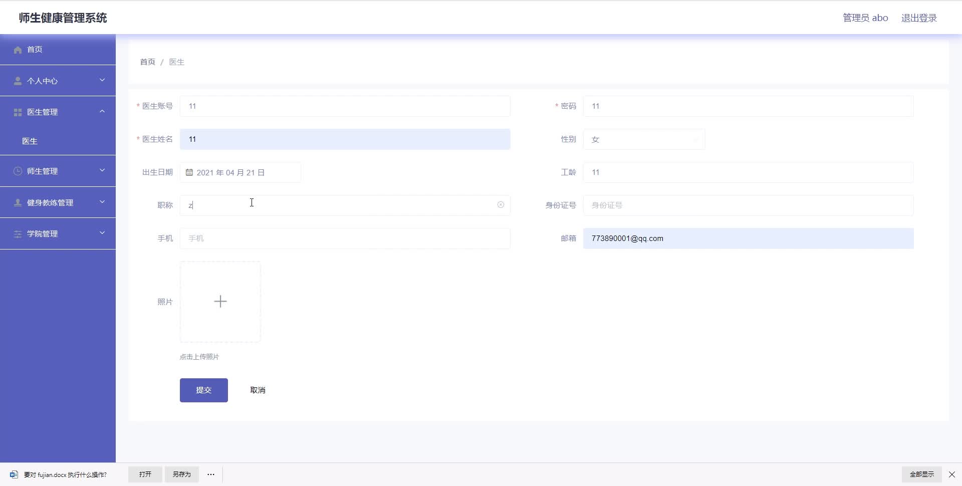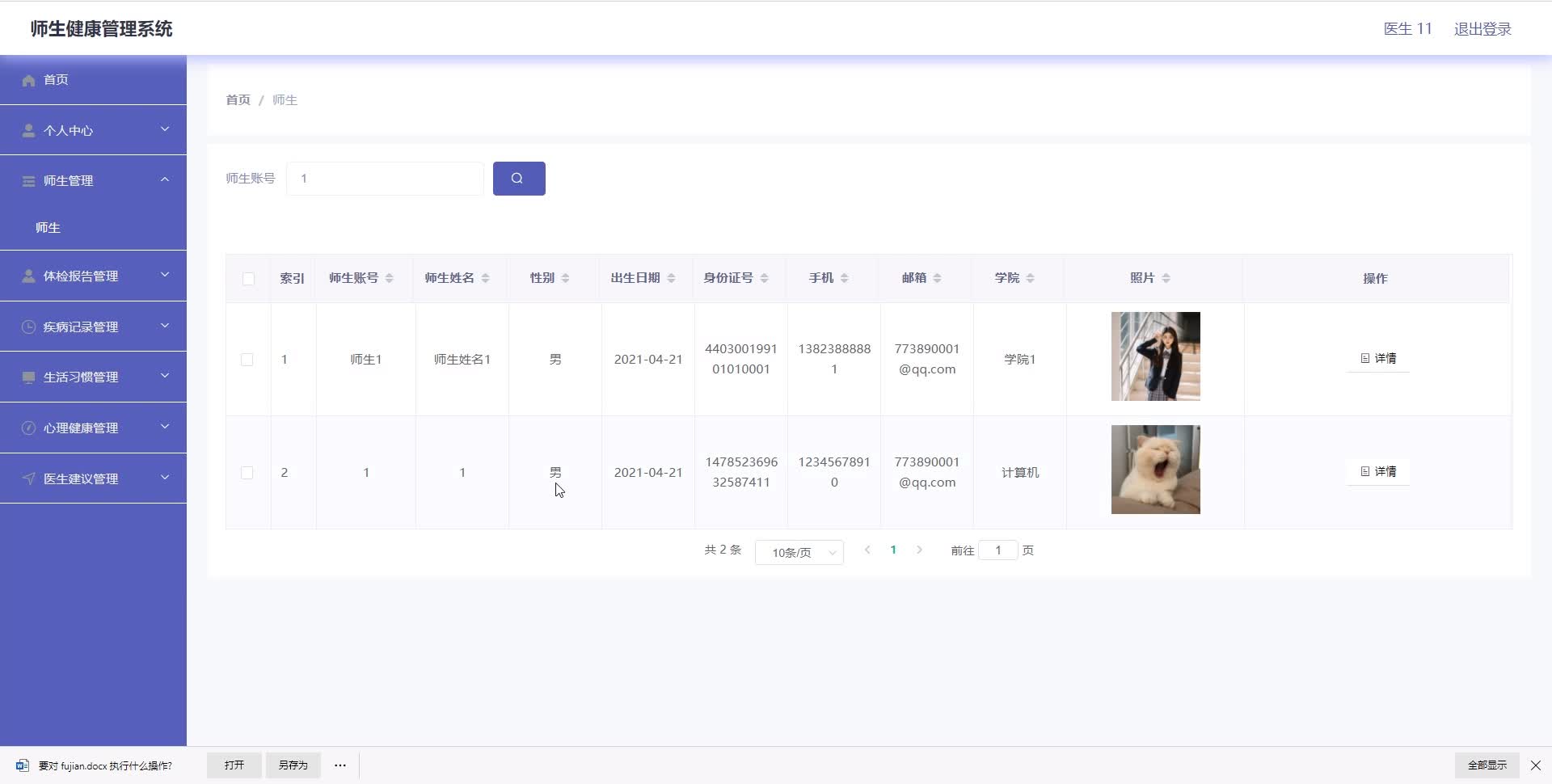 《师生健康管理系统的设计与实现》该项目含有源码、文档等资料、配套开发软件、软件安装教程、项目发布教程等