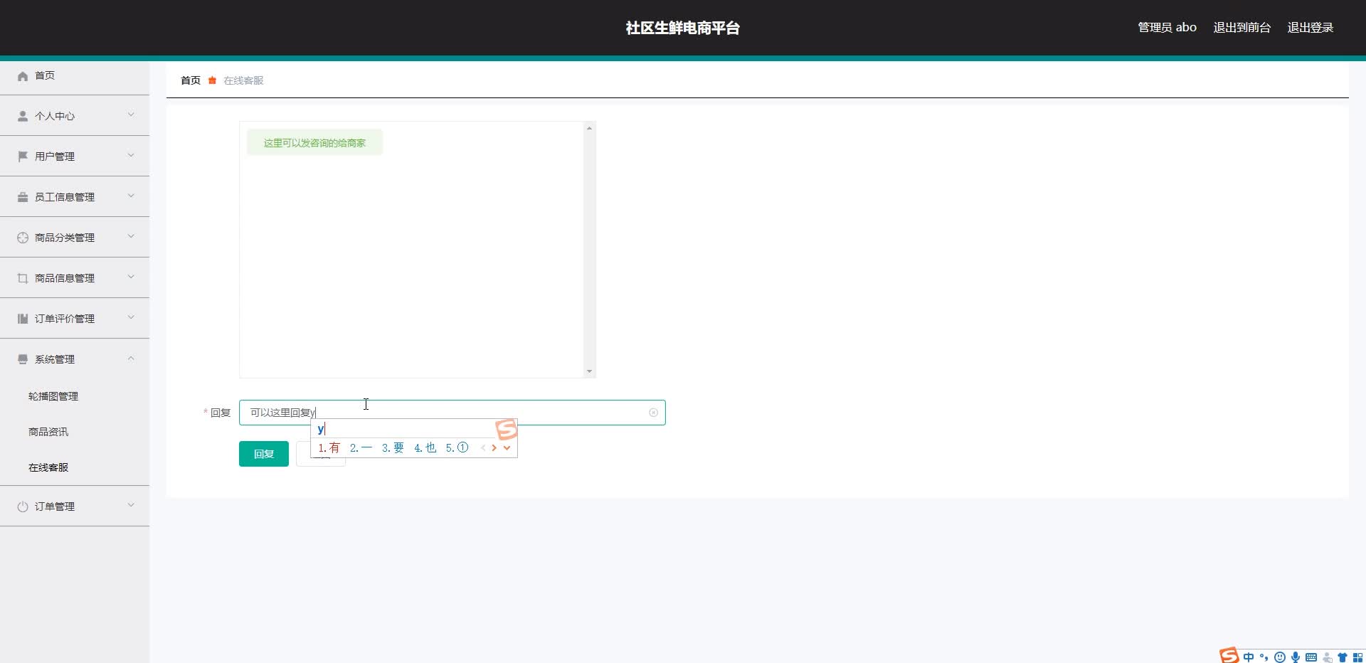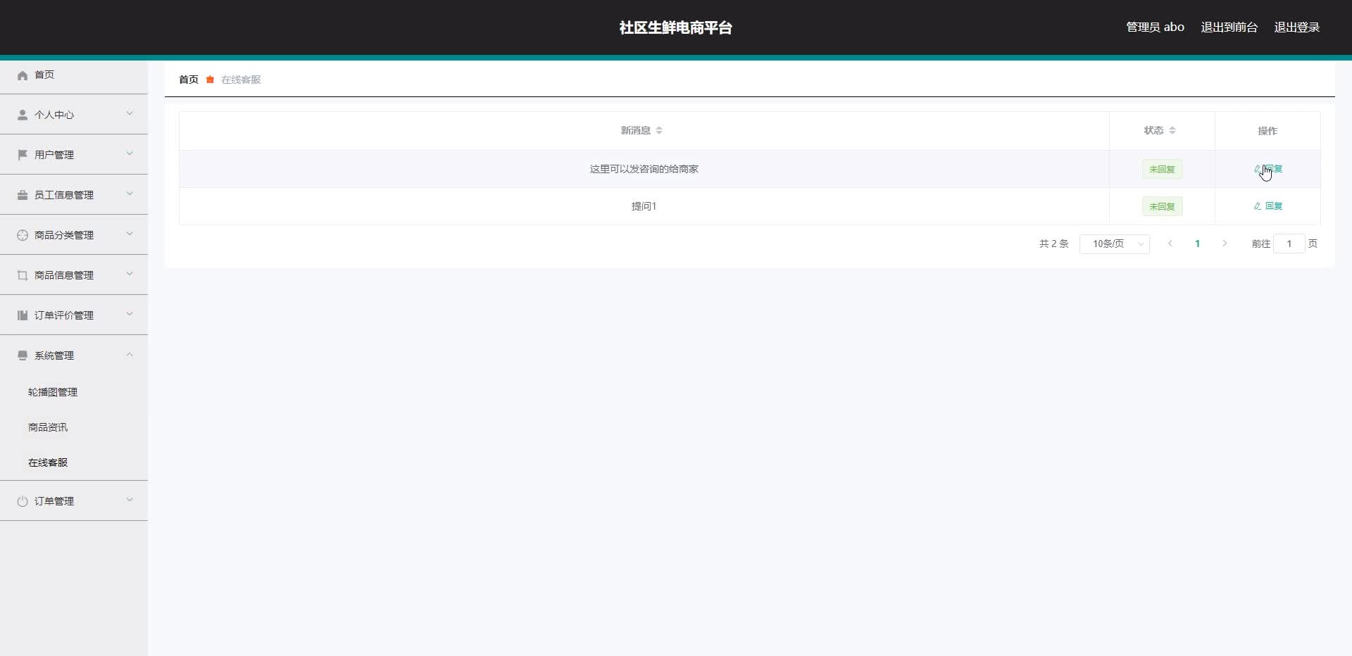 本社区生鲜电商平台主要实现了管理员和用户两个角色。