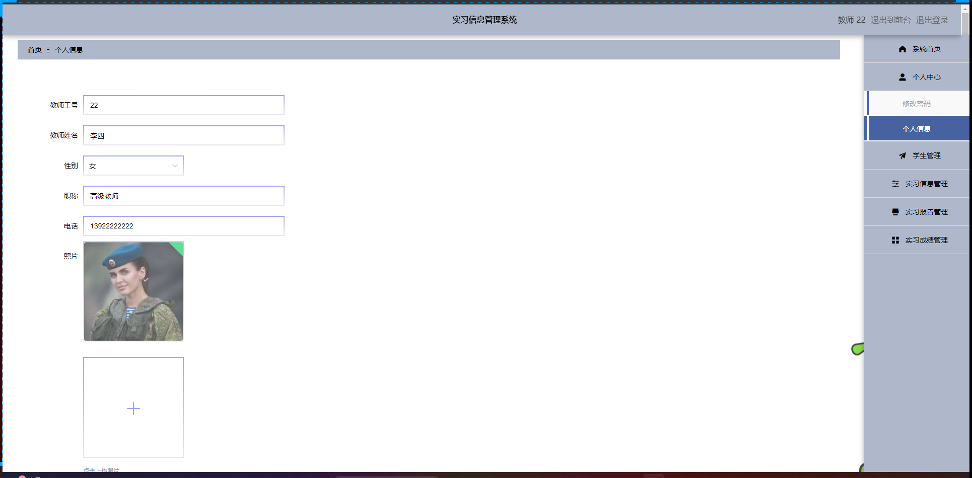 投简信息管理、实习信息管理、实习报告管理、实习成绩管理、岗位申请管理、系统管理等功能模块。