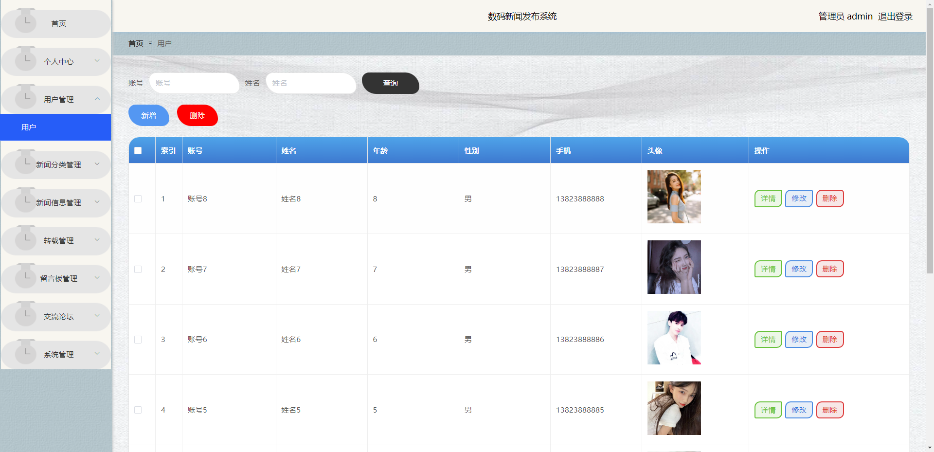 评论、赞、踩的操作;管理员可在后台进行管理新闻、管理用户、管理留言板等活动。