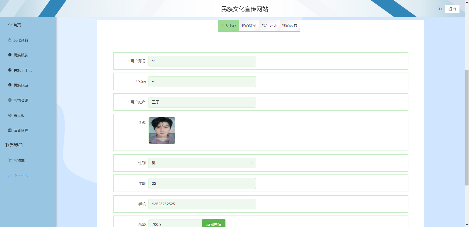 主要具备登录注册、个人中心、用户管理、商品分类管理、文化商品管理、民族服饰管理、民族手工艺管理、