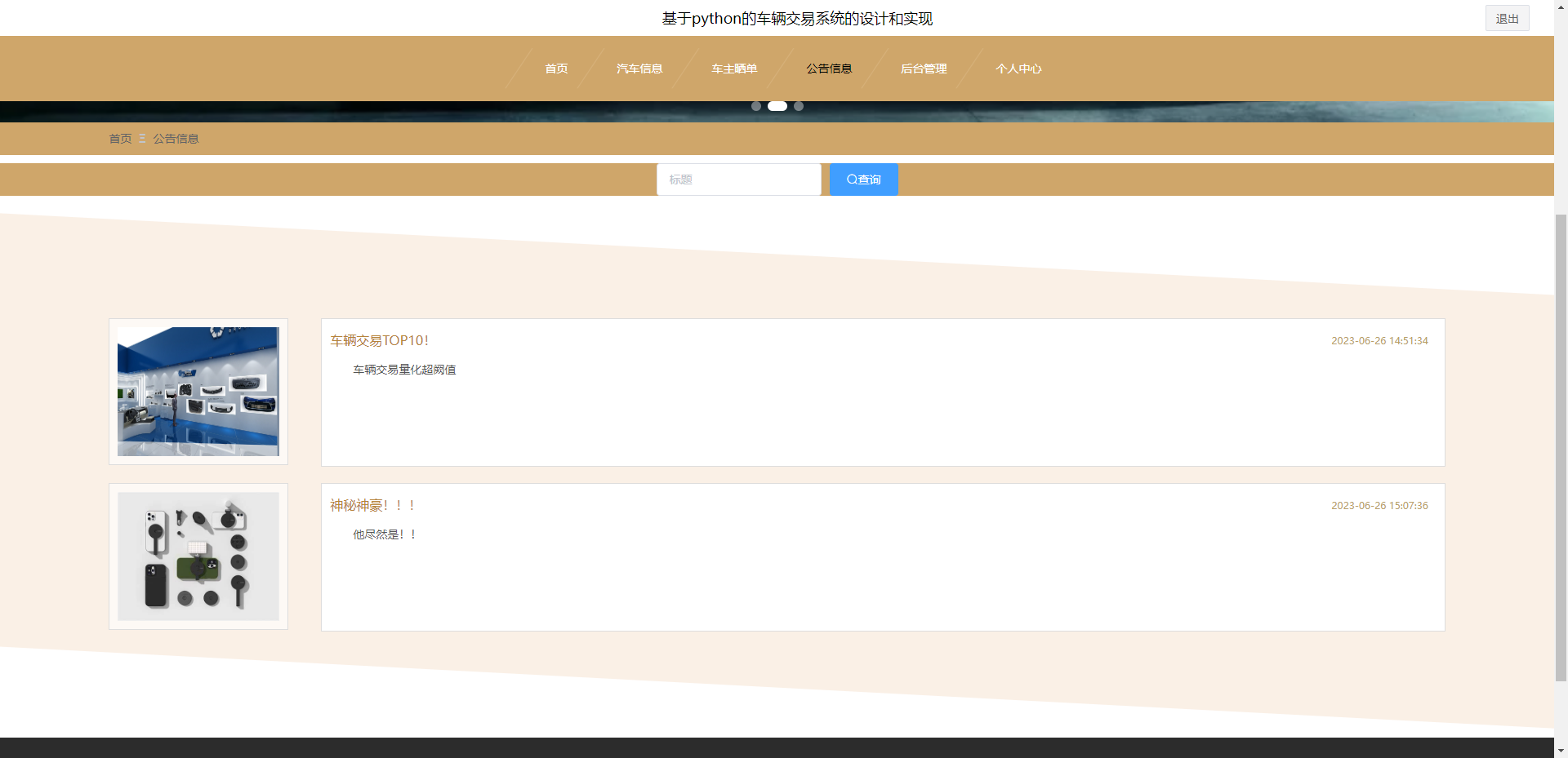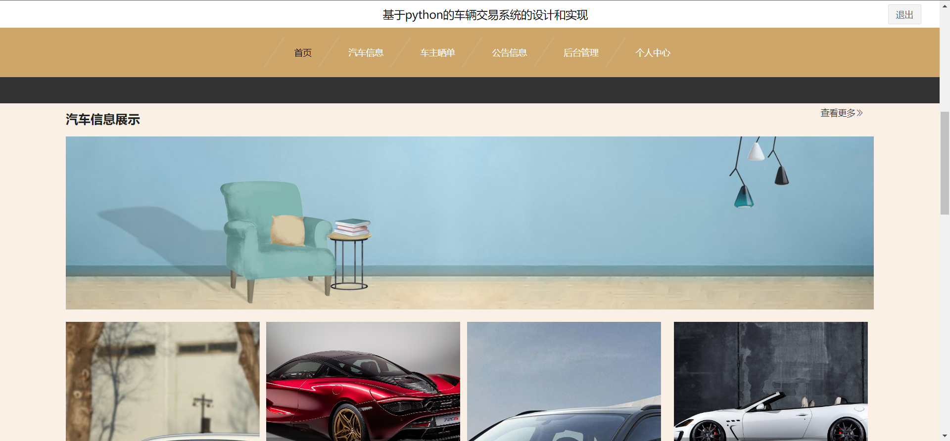 前台模块:首页、汽车信息展示、车主晒单、公告信息、后台管理、个人中心