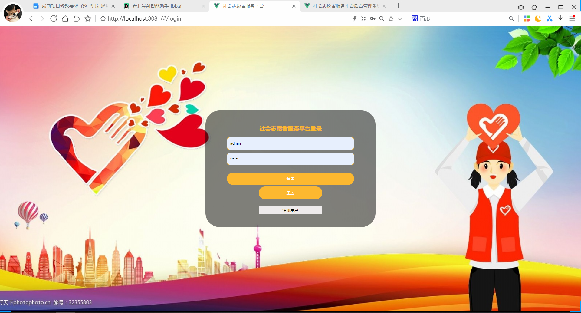 下面是系统运行起来后的一些截图: