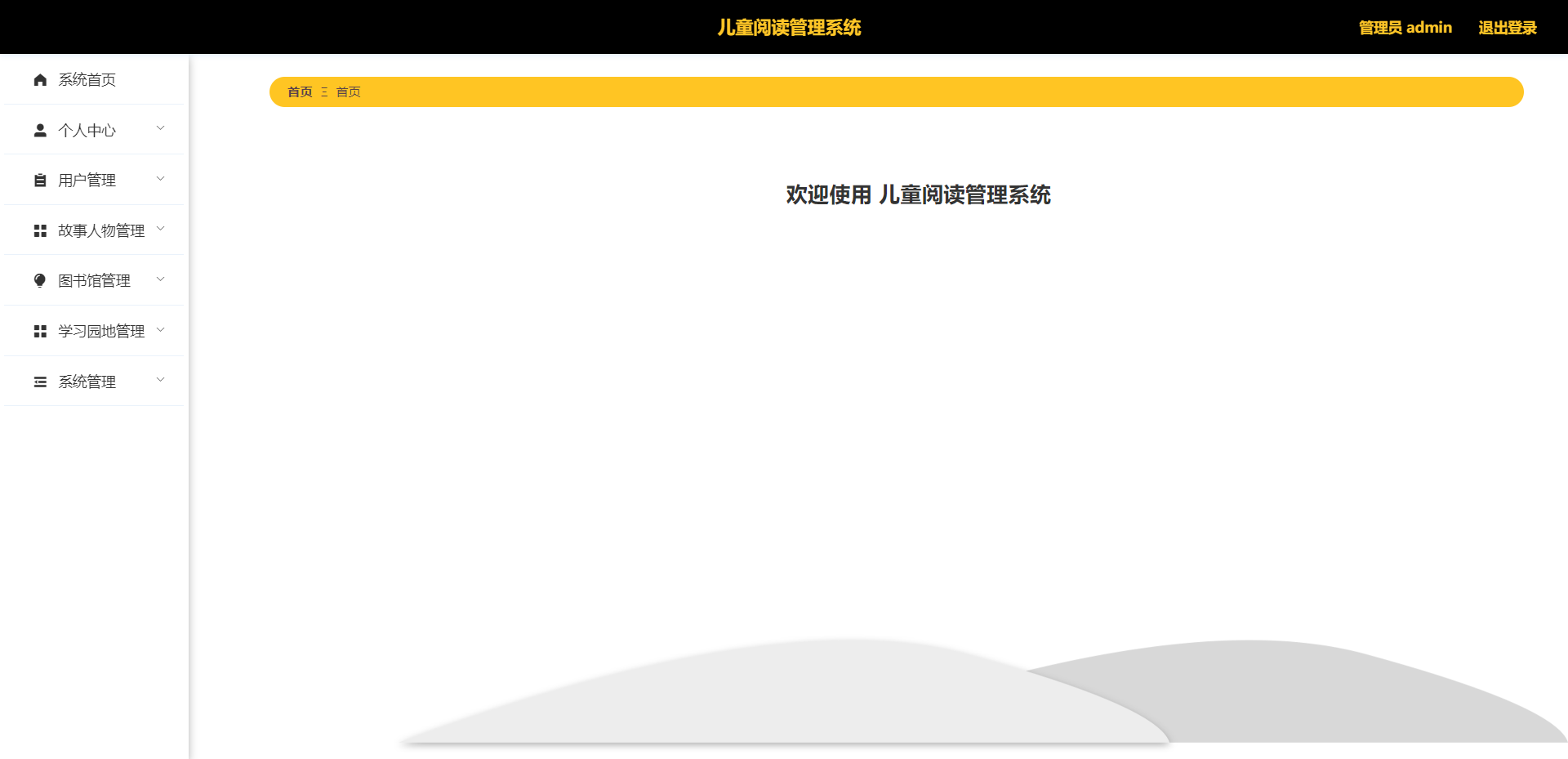 后台管理员端:管理员登录,首页,个人中心,用户管理,故事人物管理、图书信息管理,学习园地,系统管理等功能模块。