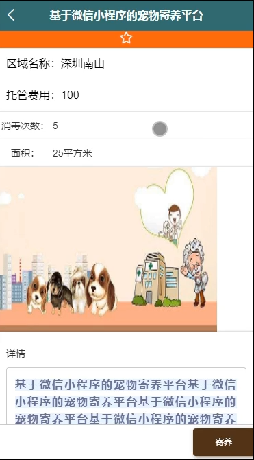 在用户界面展示的主要是查看信息、在线寄养和寄养管理、我的收藏管理、首页、公告、寄养环境查看等。