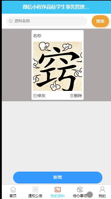 后台功能:个人中心、学校、学院、年级、班级、学生以及教师的管理,通知公告管理、学生资料管理、待办事项管理、教务处通知管理、讲座通知管理、学生集合管理、试卷管理、考试管理、试题管理;