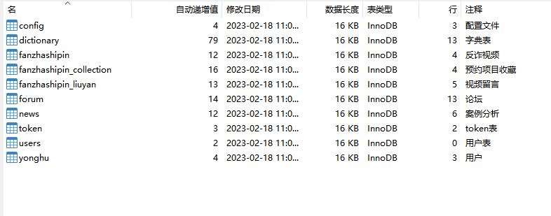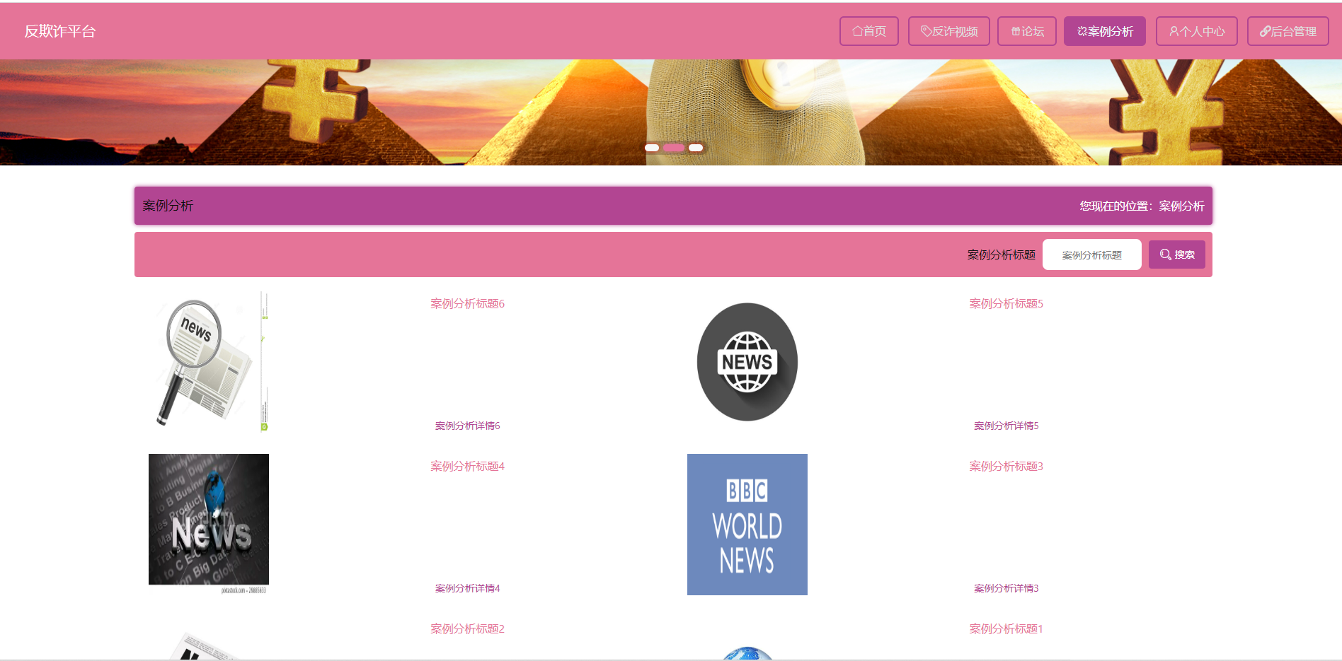 用户端功能有:首页、反诈视频、论坛、案例分析、个人中心、后台管理